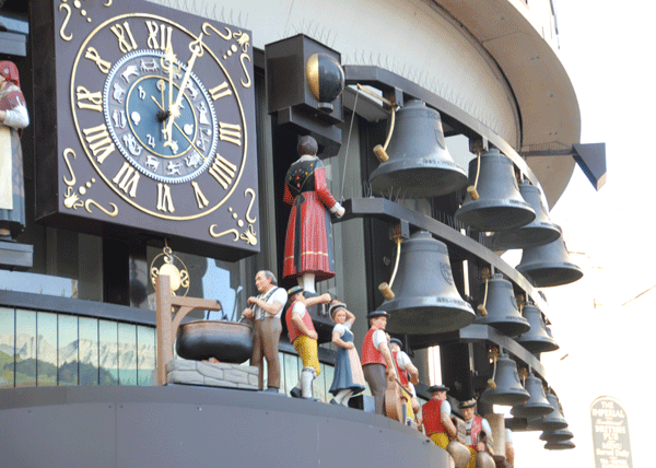 Back in 2008, the Swiss Glockenspiel, (an astronomical clock and a procession of 23 farmers herding their cows to Alpine pasture, installed in the Square in 1985 as a gift to the City of Westminster on its 400th anniversary by Switzerland and Liechtenstein as a token of centuries of friendship), was demolished to redevelop the land where the Swiss centre was situated. Redesigned by Swiss artists and rebuilt by clockmaker Smith of Derby with the combination of traditional elements and new wireless technology, the musical clock with new music was reinstalled on November 28, 2011 on a 10m (32 ft) high free-standing steel structure sponsored by the Swiss Tourism Office featuring 11 moving wooden figures representing traditional farmers forming part of a rotating Swiss Alpine backdrop beneath 27 bells. (Read the book “’A Curios Colony’: Leicester Square and the Swiss” by Peter Barber which portrays the deep-rooted connections between the Swiss émigrés and the area around the Square.)