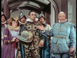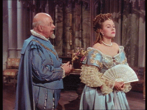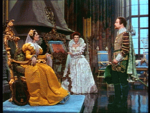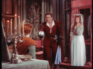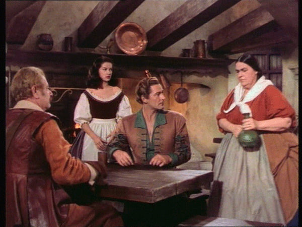 Keeping up with the image of the daringly gallant and dashing swashbuckler, Errol Flynn maintained an appetite for a delightful and hard life. He had his own dedicated group of drinkers and keeping him within the production schedule was one heck of a job for director Sherman and unit manager Frank Mattison. The “Singing Cowboy” Gene Autry once said, “(Flynn) spent more time on a bar stool, or in court, or in the headlines, or in bed, than anyone I knew.” He was once described by David Niven as “a magnificent specimen of the rampant male.” The frivolous, sardonic, and rather witty initial scenes of Don Juan wooing an enamoured Catherine and the inevitable encounter with her enraged husband is a spoof of the personality of Don Juan and of star Flynn himself.