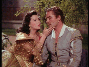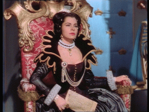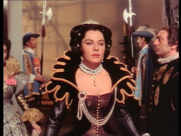 Being the period following the end of the war when the box office receipts were slumped, in order to make the production economical, producer Jerry Wald (1911-1962) started taking steps to revise and embellish the script (based on the original story by Herbert (Addison) Dalmas (1902-1989)), with the help of a series of writers, including “Max Brand” (aka: Frederick Faust) and William Faulkner. Aside from the use of props and scenes from “The Adventures of Robin Hood” and “The Private Lives of Elizabeth and Essex”, a sequence relating to a great ball was definitely removed from the final screenplay that would be at last credited to screenwriters George Oppenheimer (1900-1977) and Harry Kurnitz (1907-1968). Some people in the field of film-making have an innate ability to turn screenplays into star-studded blockbusters.