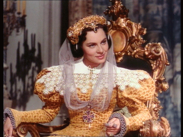Adventures of Don Juan”, does not follow the basic storyline of a great lover’s entanglements with the Italian Borgia family, as featured in John Barrymore’s version. On the contrary, Flynn’s Don Juan de Maraña, living in 17th century Spain, is concerned with spoiling the dastardly schemes of the lovely Queen Margaret’s first minister, Duke of Lorca and wooing her.
