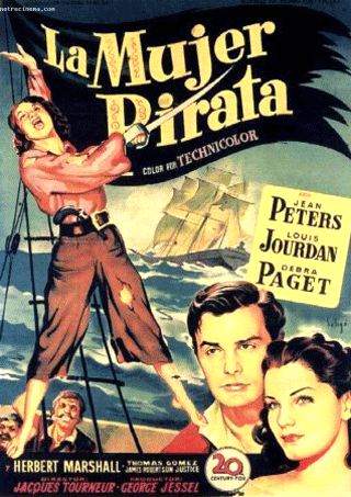 The 1945 film, “The Spanish Main” by director Frank Borzage (The Big Fisherman) featured the fictionalized account of the real-life cross-dressing buccaneer Anne Bonny (1698-1782), a daring Caribbean femme fatale who joined the crew of pirate John “Calico Jack” Rackman after having an affair with him. Reputed to be the first film of RKO Radio in the Technicolor, starring Paul Henried, Maureen O’Hara and Binnie Barnes in the role of Anne Bonny, it told the story of Dutch sea Captain Laurent “The Barracuda” Van Horn. Shipwrecked on the coast of Spanish-governed Cartagena, he escapes from the hangman’s noose and takes up piracy for revenge against Spain. The film registered impressive profit in the box-office and won George Barnes an Academy Award nomination for Best Colour Cinematography.