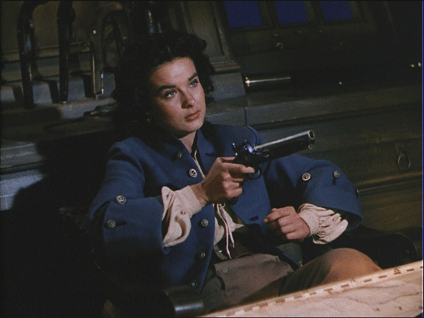 I would also like to think that Tourneur made this film without any alternative agenda other than to make a simple pirate tale – some 81 minutes of entertainment which has all the virtues of the genre: sea-battles, swashbuckling, adventure and drama with a twist showcasing the protagonist as a female dressed in male attire to suit the environment of the buccaneers of the story; and also, to differentiate this film from a series of swashbuckler films featuring male leads various studios were chucking out during 1940s and 50s.