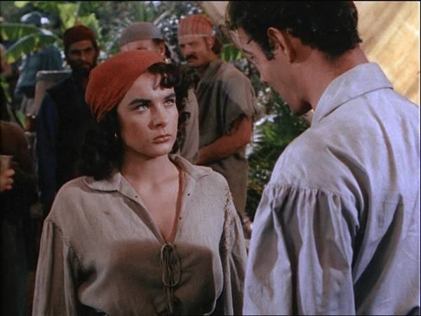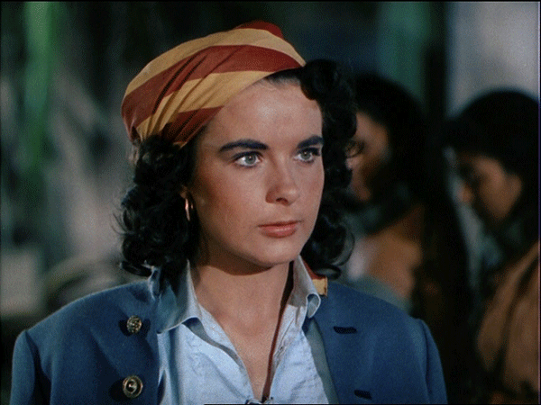 4. I love Jean Peters. Gorgeous lady and a very good actress. She does a wonderful job as Anne. Believable and tough and beautiful -even in those masculine outfits and that unflattering bandana. I don’t think Susan Hayward would have been convincing in the sword fights (nor Linda Darnell, Pat Neal or Valentina Cortesse). Peters did most of the sword scenes and without the use of a double. Fox made the right choice casting her. She looks a bit like Elizabeth Taylor on this flick, though with a Mercedes Mac Cambridge attitude. Fantastic!