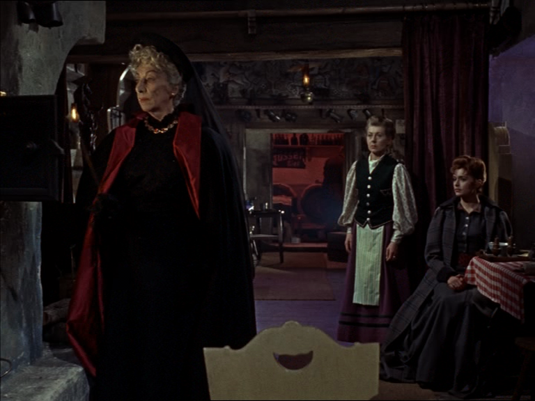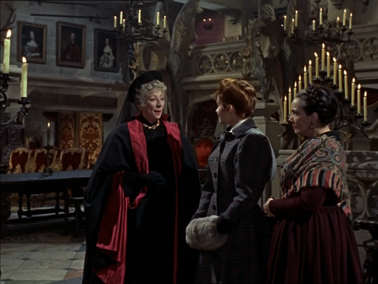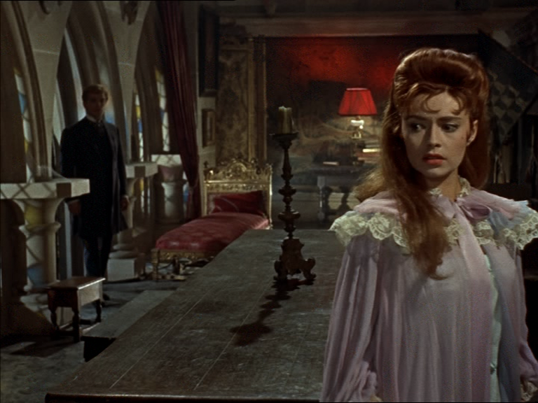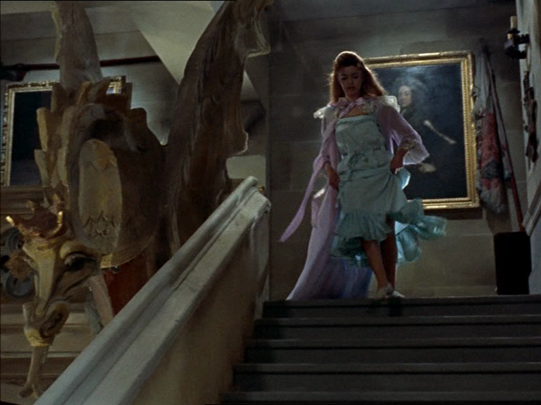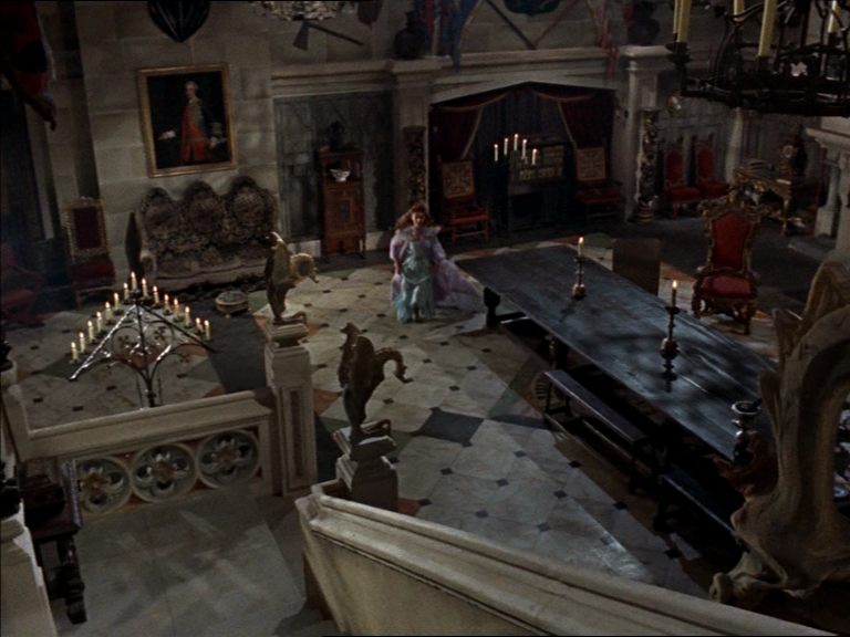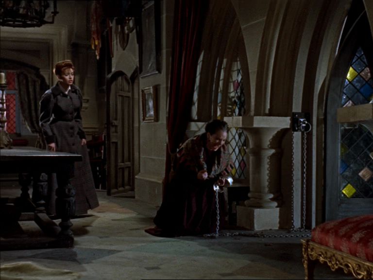 Instantly, she demanded to return the key which she knew Marianne had taken from her room. Denying any knowledge of the key, Marianne ran out of her room, down the stairs and straight into the arms of the Baron. By now, the Baroness had come to the top of the stairs. Having assured Marianne that his mother can’t harm her now, the Baron sent her back to her room to wait. As she left him, he commanded his mother to come down to him. As if hypnotised, she meekly obeyed him. Clearly under his sway, she moved down the stairs, resigned to face the dread that is to befall on her soon. Marianne ran up and disappeared into her room.