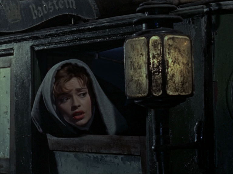 Slated for production under the alternative working title “Dracula 2”, the principal shooting began on January 26, 1960 (7 days after my birth) and came to an end by mid-March*. It was shot on locations in England: at Black Park (Iver Heath, Buckinghamshire); Oakley Court, (Windsor Road, Oakley Green, Windsor); and Bray Studios, (Down Place, Oakley Green, nestled beside the silver Thames). The post-production work was precipitated to meet the delivery date of Universal and the movie was premièred on July 6, 1960 at the Odeon, Marble Arch, London. I read somewhere that actress Yvonne Monlaur, the leading lady of the film, made a regal appearance for the Premièr in one of the horse-drawn carriages used in the movie.