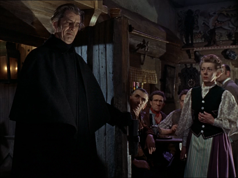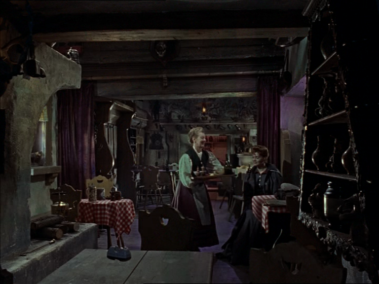 The Inn was crowded at that time of the night by village people and Transylvanian folk music can be heard, accentuated by the tones of cimbalom. Johann, the landlord, offered her hot Goulash, a dish of sauerkraut and red wine from the valley. Marianne told him that she would be eating alone and would leave quickly since she must reach Badstein latest tomorrow. At that moment, the mysterious man suddenly appeared before the doorway and stood glaring at her. The gay mood inside the Inn suddenly changed. The music and conversation came to a quick stop. As abruptly as he appeared, he was gone a moment later, closing the door behind him.