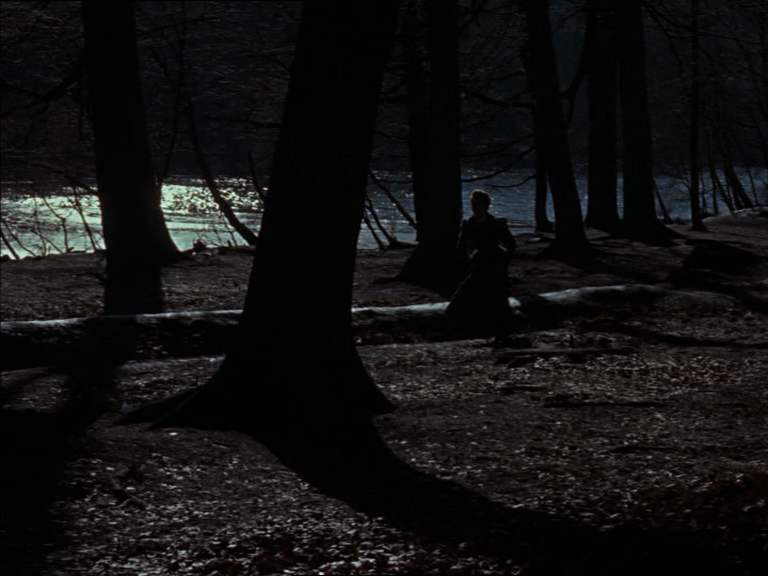 At the sight of the horrible scene, Marianne ran out of the room, down the stairs and out of the castle into the cold night and dark woods.