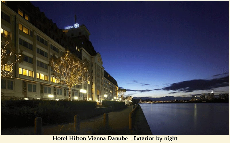 Hilton Vienna Danube is the only waterfront hotel in Vienna. It has large rooms with all amenities, superb service, and offers stunning views from the right bank of River Danube (Donau), the trade highway stretching from the German Black Forest and snakes through Central and Eastern Europe to touch the Black Sea on the coast of Romania.