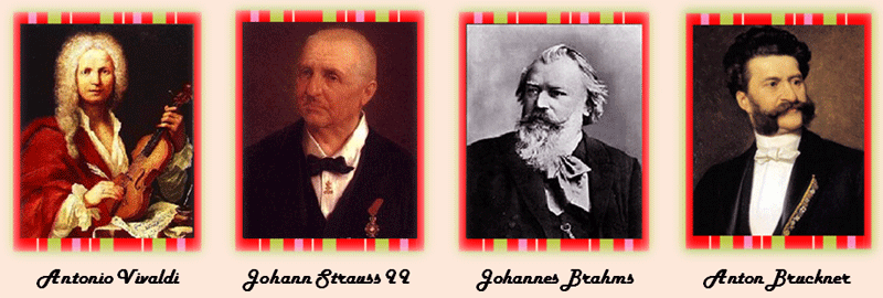 2)    Other major Composers who died in Vienna and their year of death: Antonio Vivaldi (1741); Christoph Willibald Gluck (1787); Franz Joseph Hayden (1809); Wolfgang Amadeus Mozart (1791); Ludwig van Beethoven (1827); Franz Schubert (1828); Johann Strauss II (1899); Johannes Brahms (1897); Anton Bruckner (1896); Gustav Mahler (1911), etc.