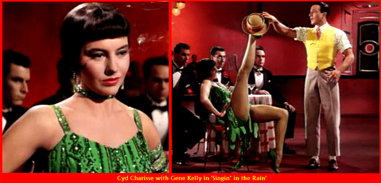 cyd1MARCH 8: Remembering American actress and dancer Cyd Charisse (1922 – 2008) of films: Ziegfeld Follies (1945); Singin’ in the Rain (1952); The Band Wagon (1953); It’s Always Fair Weather (1956); Meet Me in Las Vegas (1956); Silk Stockings (1957); Party Girl (1958); Something’s Got to Give (1962); The Silencers (1966), etc. cyd2cyd3Born on March 8, 1922, she was originally known as Tula Ellice Finklea, and later by the name “Lily Norwood” before she became popular as Cyd Charisse – the leggy fabulous dancer who brightened up the Hollywood musicals of the 1950s, notably opposite Fred Astaire and Gene Kelly. In her autobiography, “Debbie: My Life”, actress Debbie Reynolds quoted: “Cyd did everything perfectly. Her legs went over her head and into the sky.” cyd4Cyd Charisse will be missed by many. She now reposes at the Hillside Memorial Park Cemetery in Culver City, Los Angeles County, California where actress Shelley Winters is also buried. One of the most beautiful talented dancers on film, Cyd will always be in our hearts.
