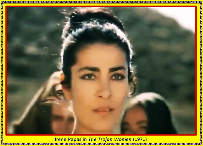 Screen actress Irène Papas became synonymous with world-class Greek stage/screen performers in the category of Katina Paxinou (Katina Konstantopoulou, 1900-1973), Melina Mercouri (Maria-Amalia Mercouri, 1920-1994), Eva Kotamanidou (1936-2020), etc, irrespective, to few critics, some may be of dark complexion or with language fluency issues.