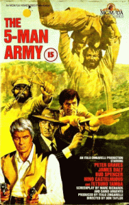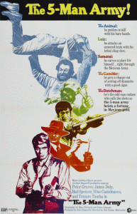 Mitch’s Van Horn is assertive, aggressive, yet tender and moral. A role initially offered to Trevor Howard, it is similar to the one Mitch had played as a preacher with a gun hidden in his Bible in the 1968 movie “Five Card Stud”. He not only sports a casual acting style (especially the scenes when he couldn’t resist playing the priest awaiting direct confrontation with De la Plata) and his trademark drooping, bedroom eyes but also carry a machine gun and a switchblade cross, that also contributes to the action scenes.