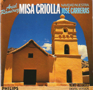 (✣Ariel Ramirez’s “Misa Criolla” in our possession is a version by Spanish Catalan tenor José Carreras recorded in the Santuario de la Bien Aparecida, Cantabria, Spain in July 1987.The CD sleeve is shown above)